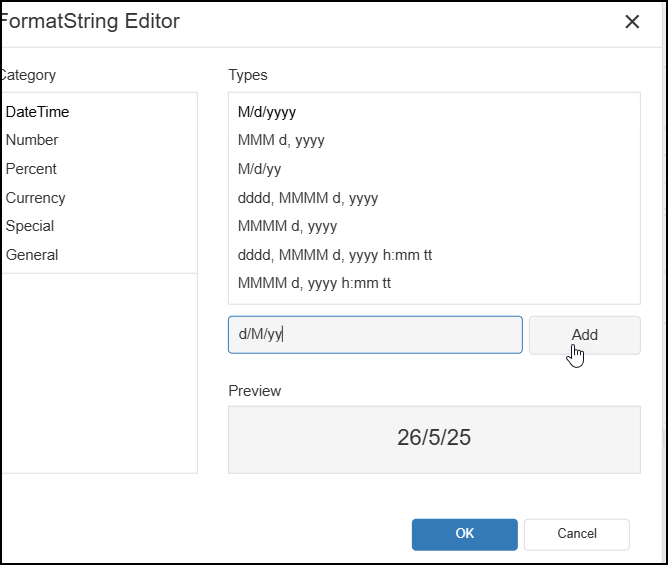 Insert cells or columns for both the calculated field names and where the data goes underneath using the steps covered in 1-5 in Add a Data Field. Add the name of the Field (this is free text) e.g 'TESC' (Time Elapsed Since 'Last' Update) and 'TESU' (Time Elapsed Since 'Last' Update) in the Group Header above the Detail band. Use the Report Explorer to apply formatting for the Appearance or to the Date formats (but not the calculated Date Fields).