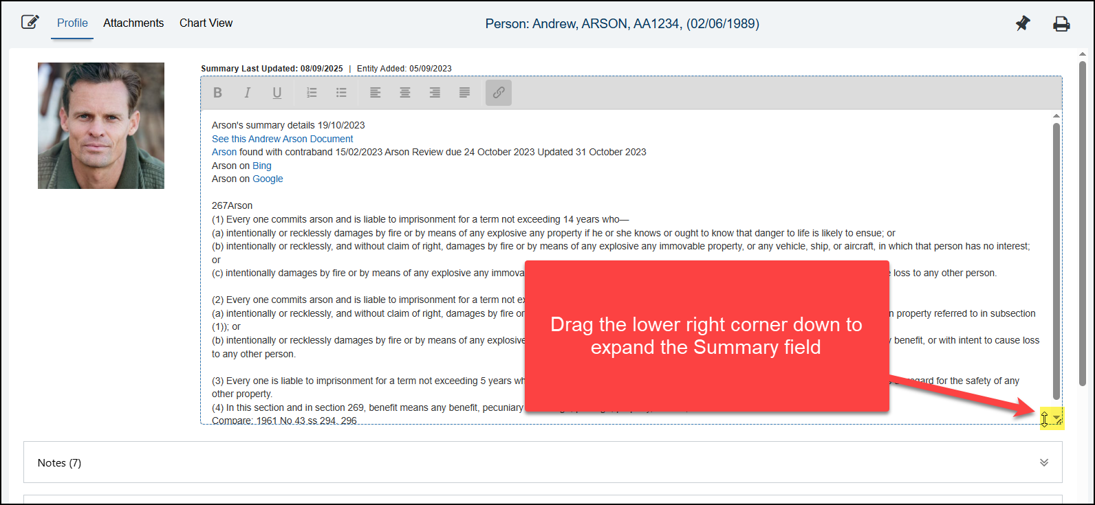 The Entity Summary field can now be expanded (even when not in edit mode) by dragging down the lower right corner of the summary field to show all the content. The existing scroll function is also still available.