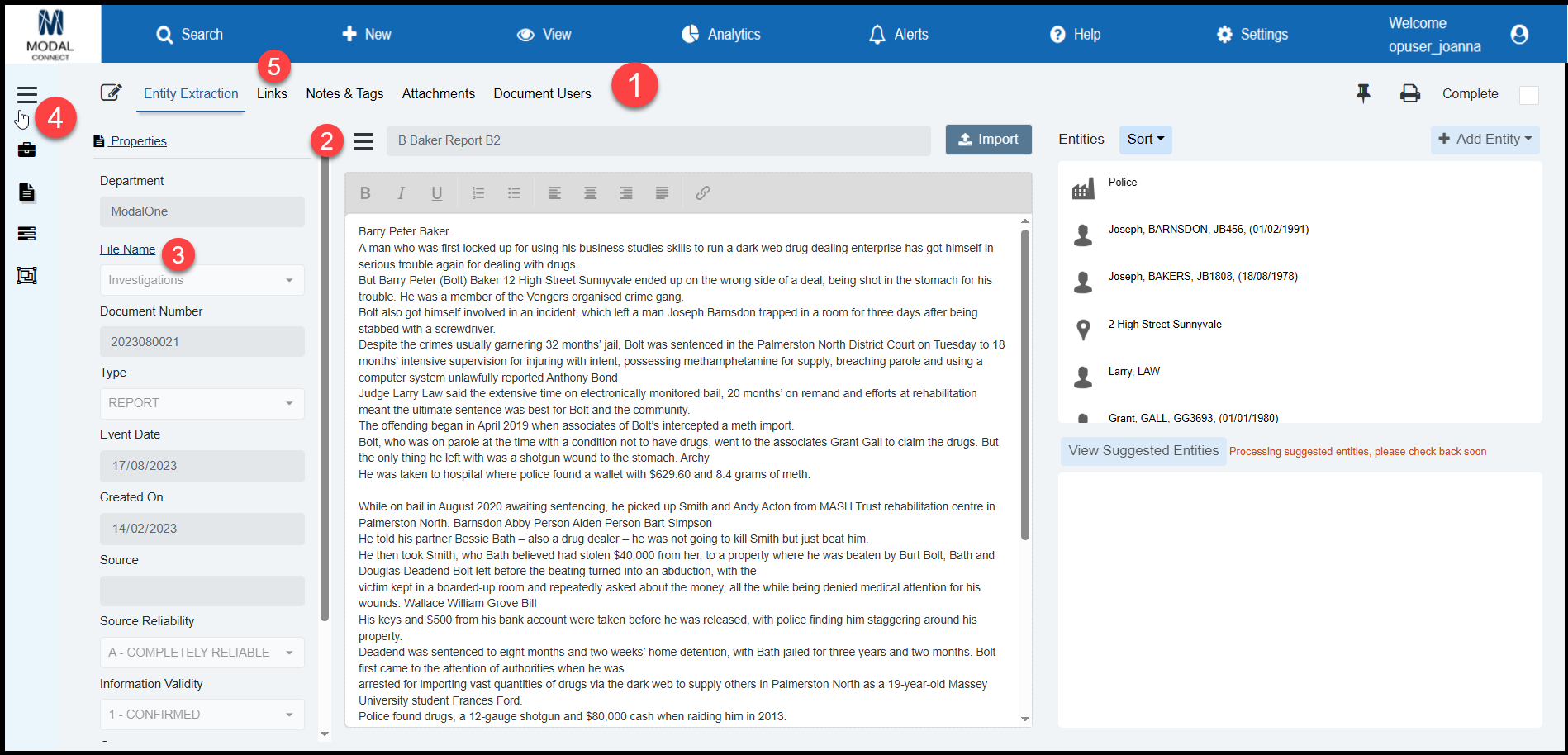 Document Entity details – In edit mode there is a new 'View Details' function to view\open an Entity's Properties from both the Document Entities and Suggested Entities lists. This provides the same function as available elsewhere e.g. Notes and Attachments.