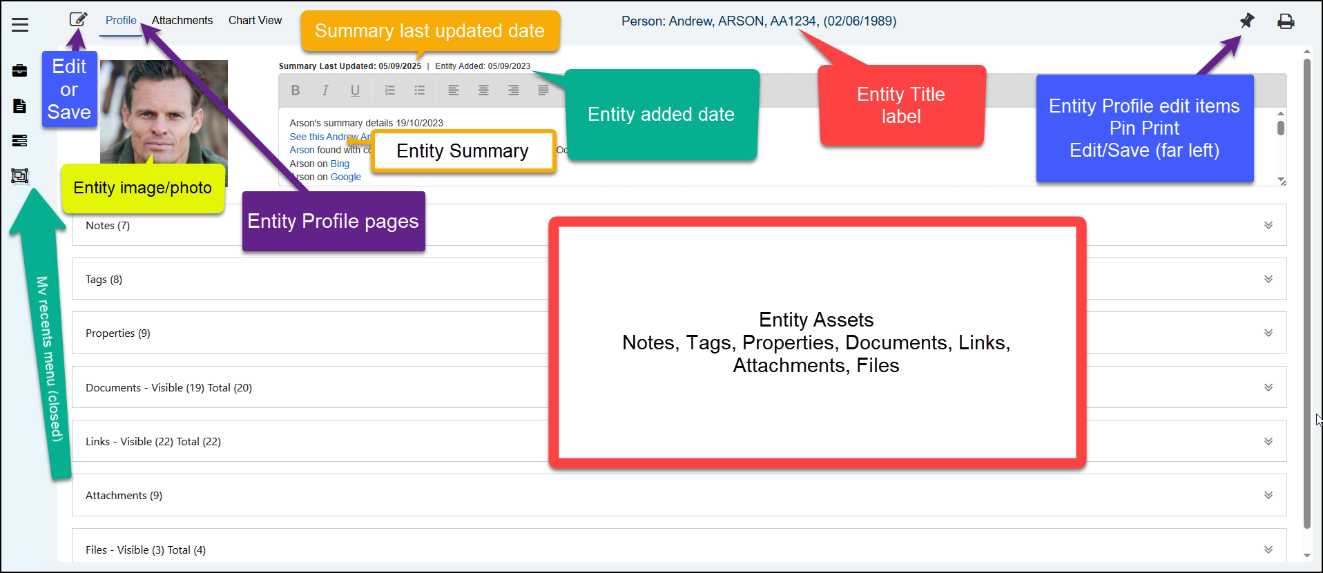 The Entity Profile Summary – now includes Editing tools enabling Summary content to be formatted and hyperlinks added (in Edit mode).